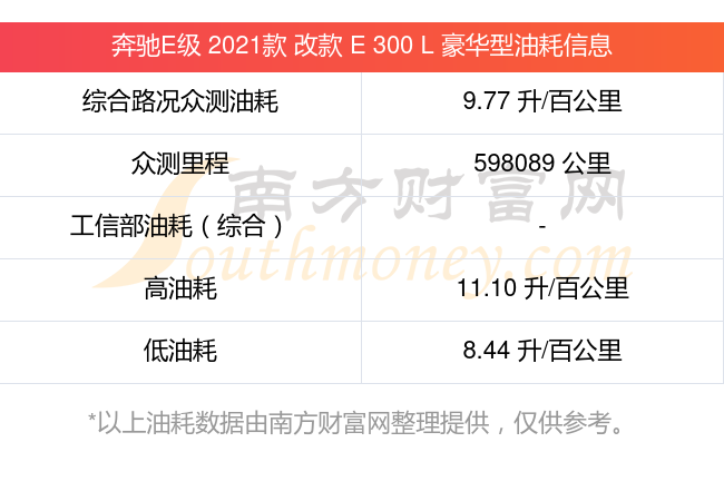 奔驰E级2021款改款E300L豪华型动力方面,搭载的是一台2.0T258马力L4涡轮增压发动机,匹配9挡手自一体自动档变速箱,燃料形式为汽油,常规整备质量1800kg,厂家参考价49.89万元。