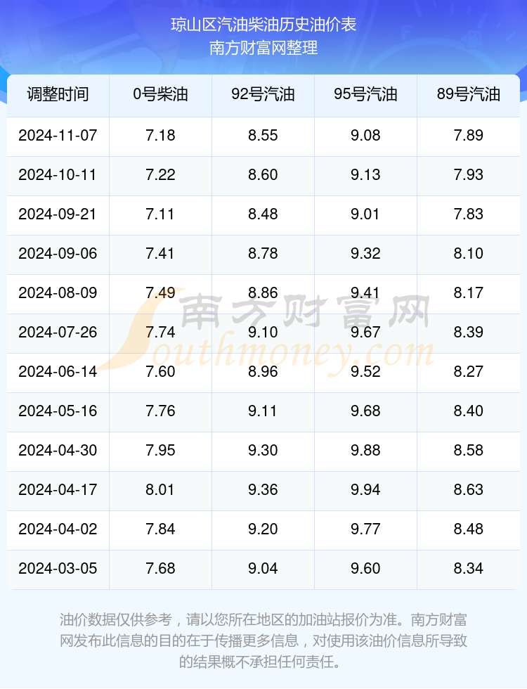 琼山区历史油价表