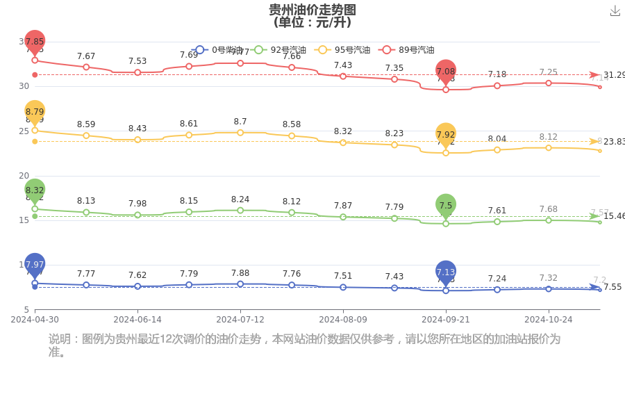本站提供的油价数据仅供参考,具体数据以加油站报价为准。