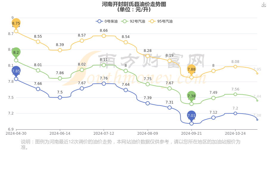 以上油价信息是当前市场上最新油价信息,油价数据仅供参考,实际在售油价可能有小幅偏差,请以您所在地区的加油站实际售价为准。