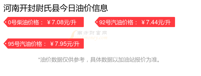 12月2日河南开封尉氏县汽油、柴油每升的价格是11月7日调整后的价格:92号汽油为7.44元,下降了0.12元,下降幅达1.59%;95号汽油为7.95元,下降了0.13元,下降幅达1.61%;0号柴油为7.08元,下降了0.12元,下降幅达1.67%。