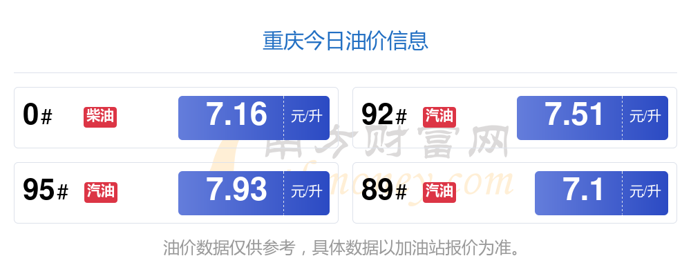 本站提供的油价数据仅供参考,具体数据以加油站报价为准。