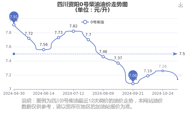 四川资阳0号柴油历史油价走势图