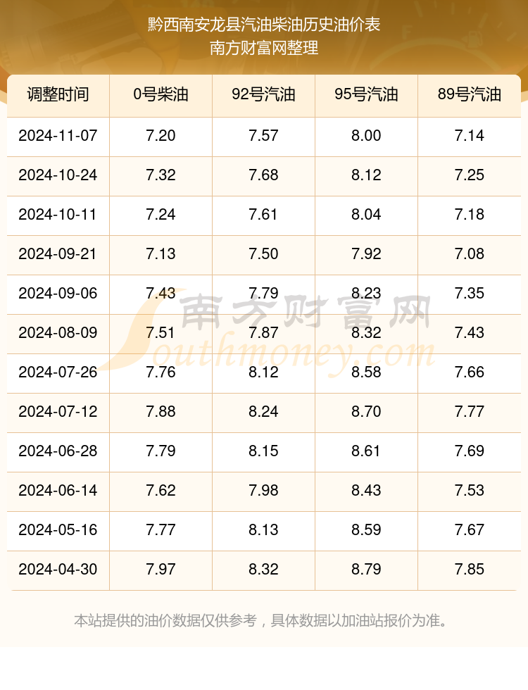 黔西南安龙县历史油价表