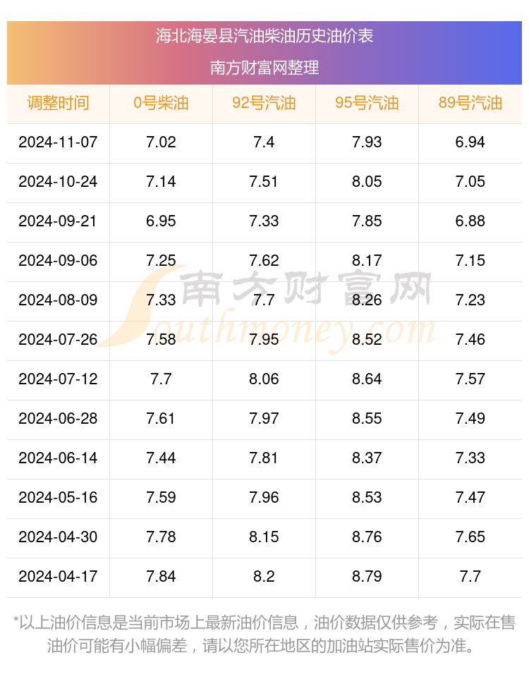 海北海晏县历史油价表