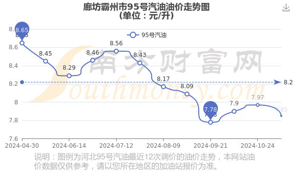 廊坊霸州市95号汽油历史油价走势图