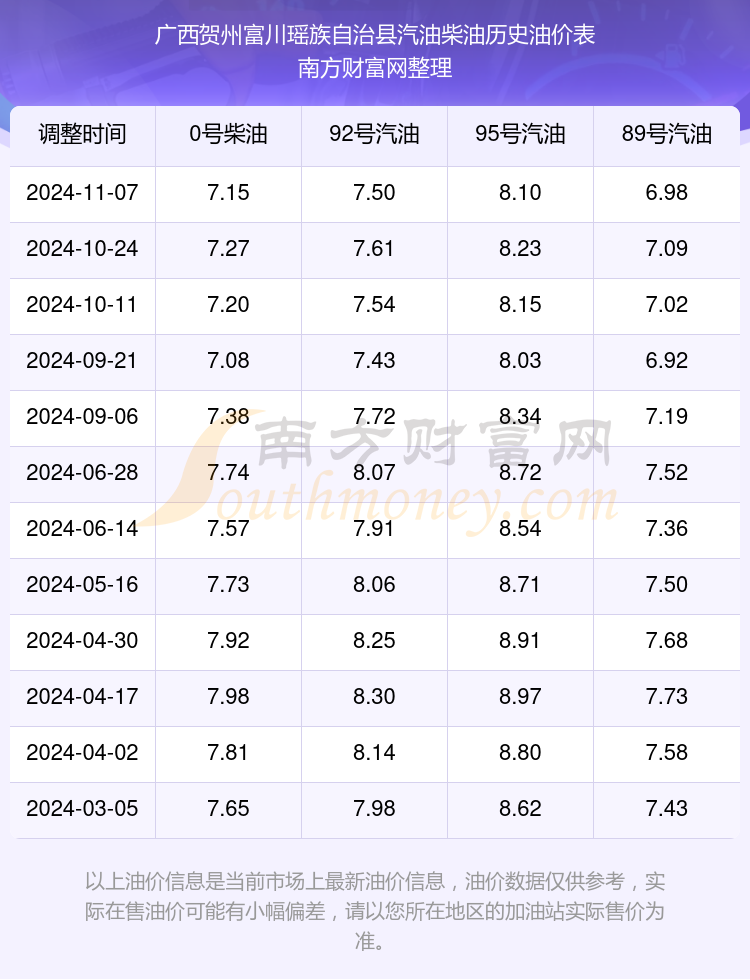 以上数据仅供参考,请以您所在地区的加油站实际售价为准。油价发布此信息的目的在于传播更多信息,对使用该油价信息所导致的结果概不承担责任。