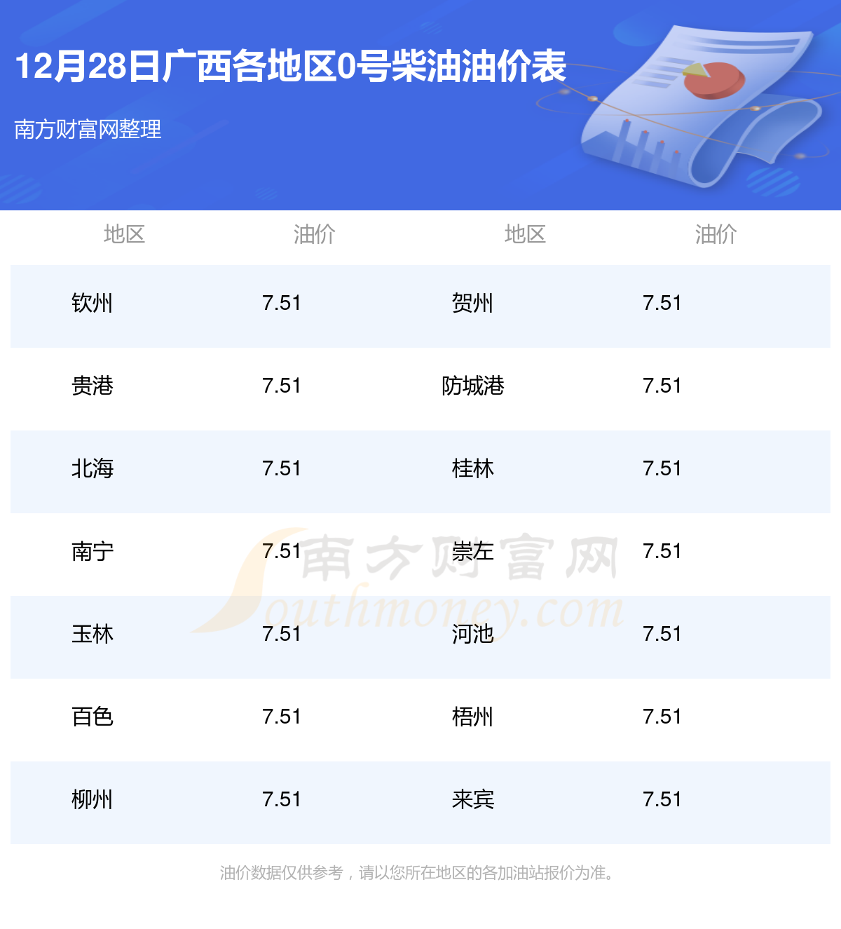 广西各地区最新0号柴油油价表