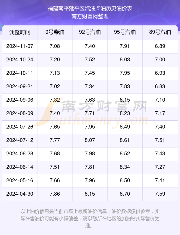 本站提供的油价数据仅供参考,具体数据以加油站报价为准。