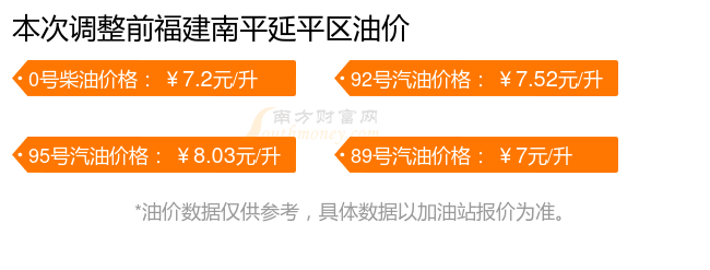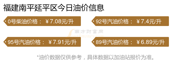 12月28日福建南平延平区汽油、柴油每升的价格为:92号汽油为7.4元,下降了0.12元;95号汽油为7.91元,下降了0.12元;89号汽油为6.89元,下降了0.11元;0号柴油为7.08元,下降了0.12元,本轮油价的调整时间为11月7日。