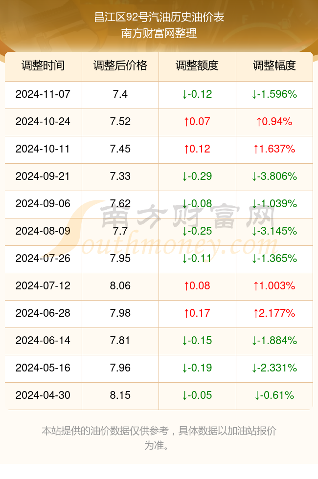 昌江区92号汽油历史油价表