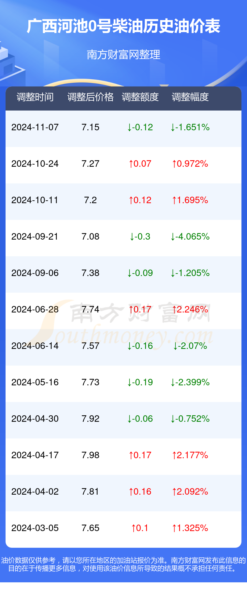 广西河池0号柴油历史油价表