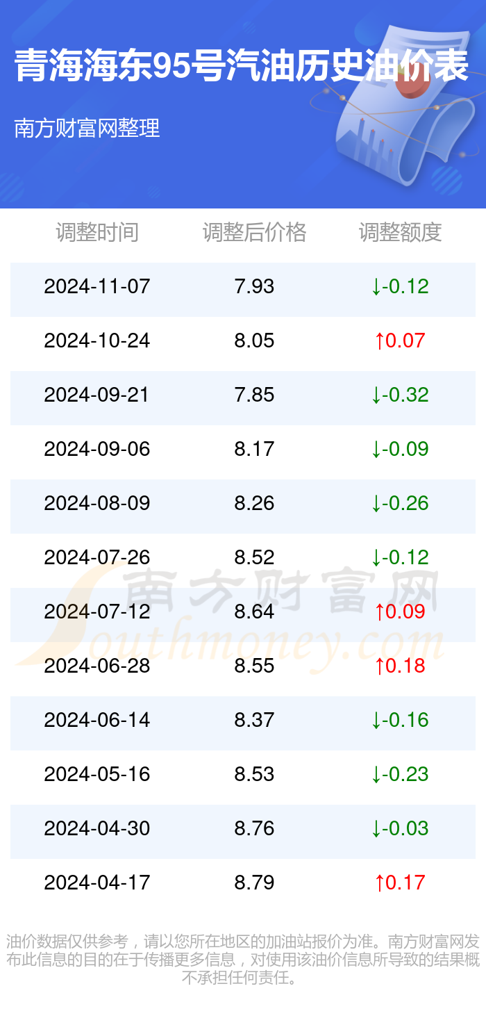 本站提供的油价数据仅供参考,具体数据以加油站报价为准。