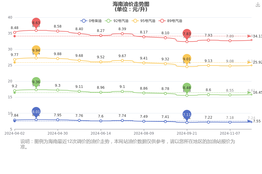 海南汽油柴油油价走势图