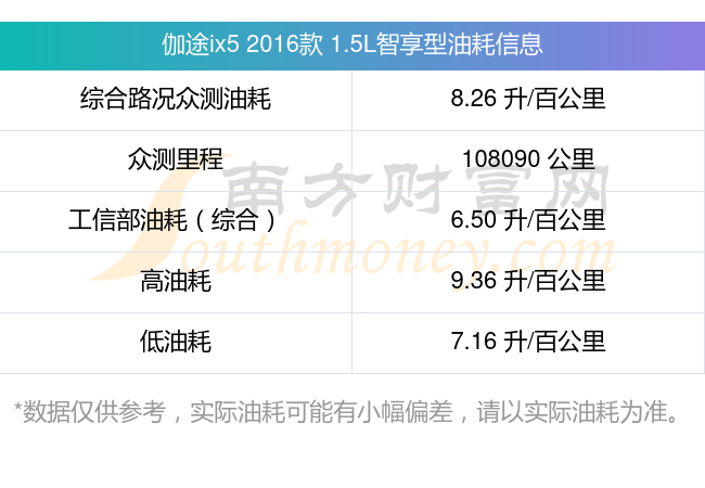 根据多位车主实测得出数据,该车型低油耗为7.16升/百公里,高油耗为9.36升/百公里,综合路况众测油耗为8.26升/百公里,工信部综合油耗为6.50升/百公里。