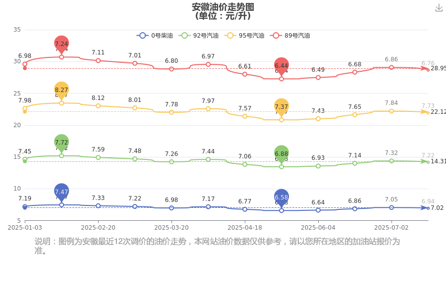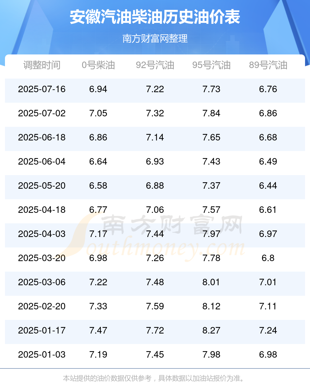 以上数据仅供参考,请以您所在地区的加油站实际售价为准。油价发布此信息的目的在于传播更多信息,对使用该油价信息所导致的结果概不承担责任。