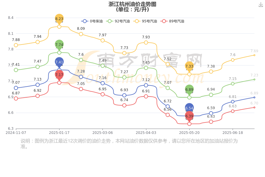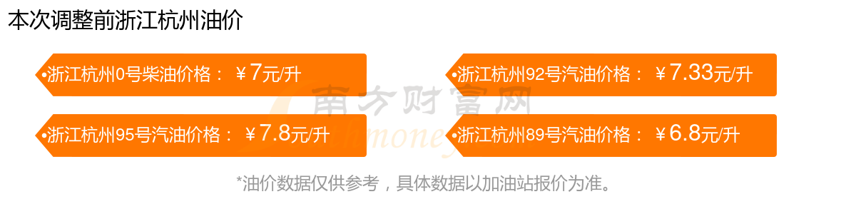浙江杭州今日油价多少一升