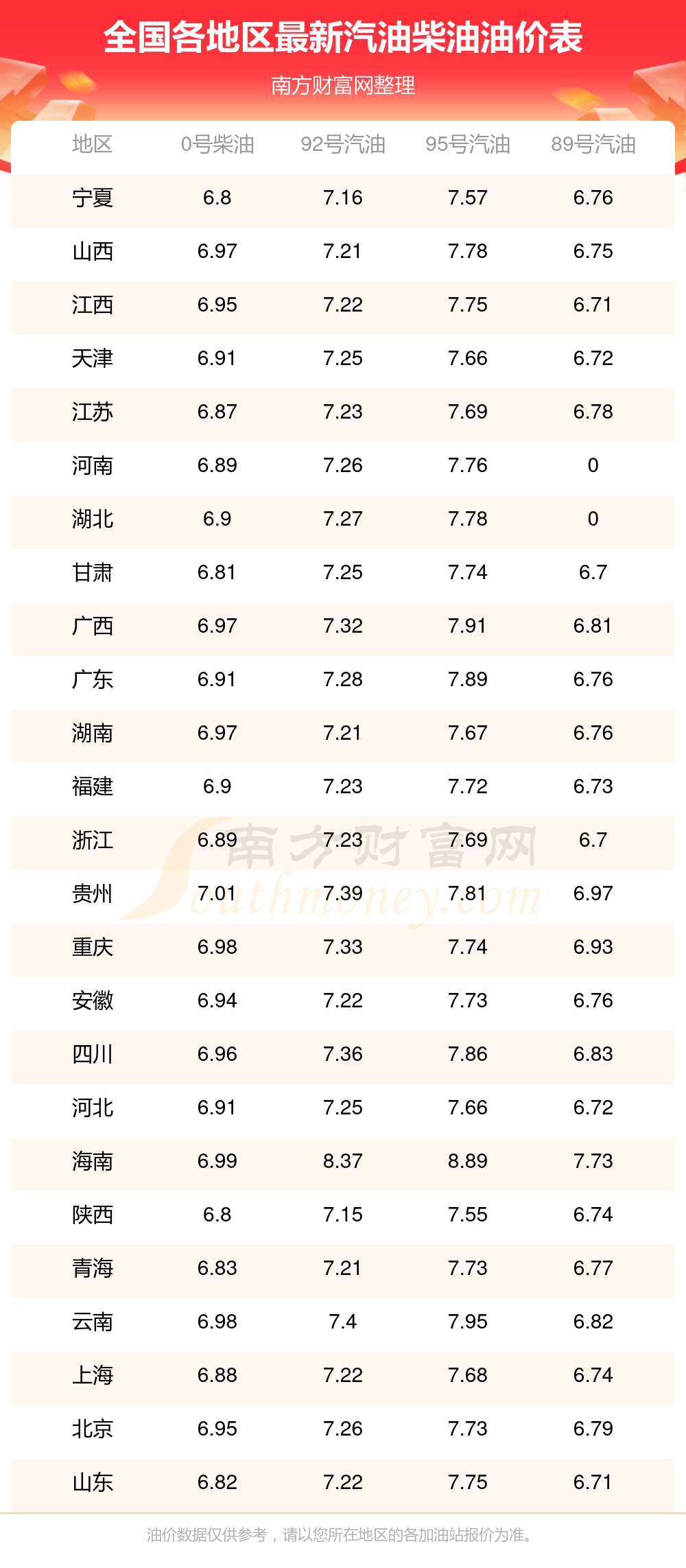 2025年最新国内各地最新油价一览,8月17日今日0号柴油价格查询