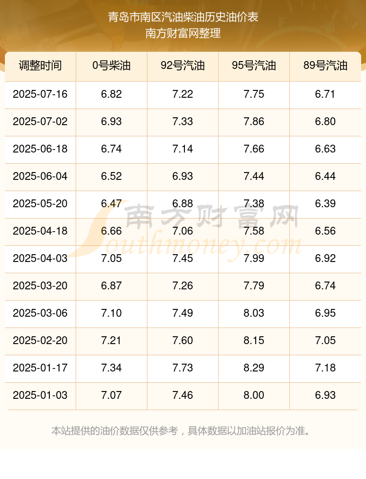 青岛市南区今日油价_8月17日青岛市南区油价一览表