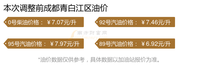 成都青白江区今日油价查询(8月22日成都青白江区汽油价格表)