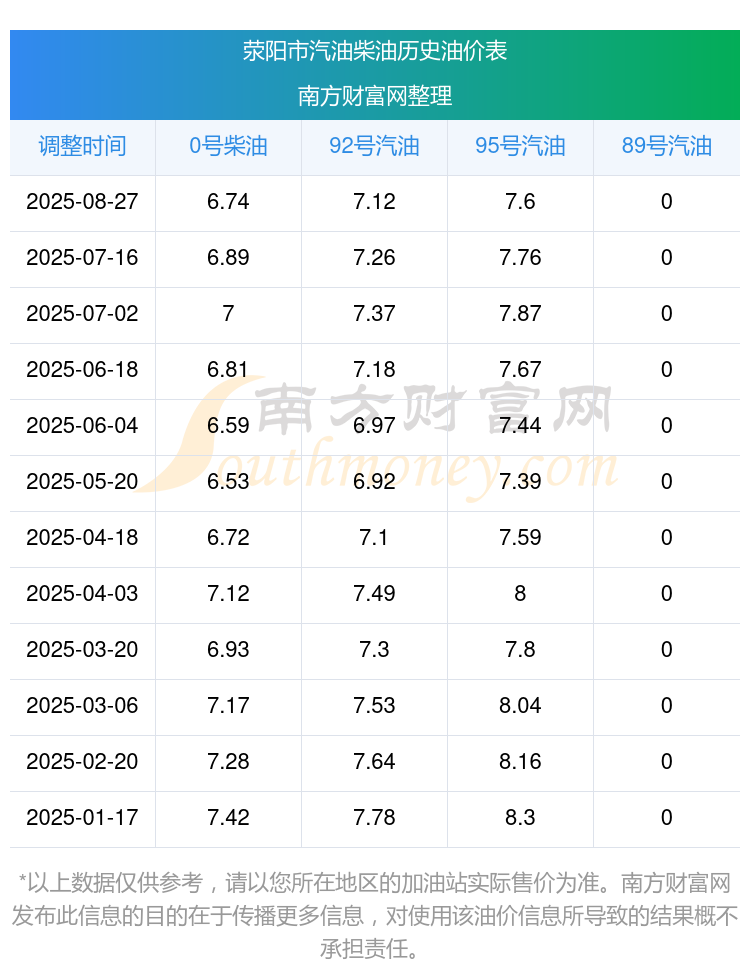荥阳市历史油价表
