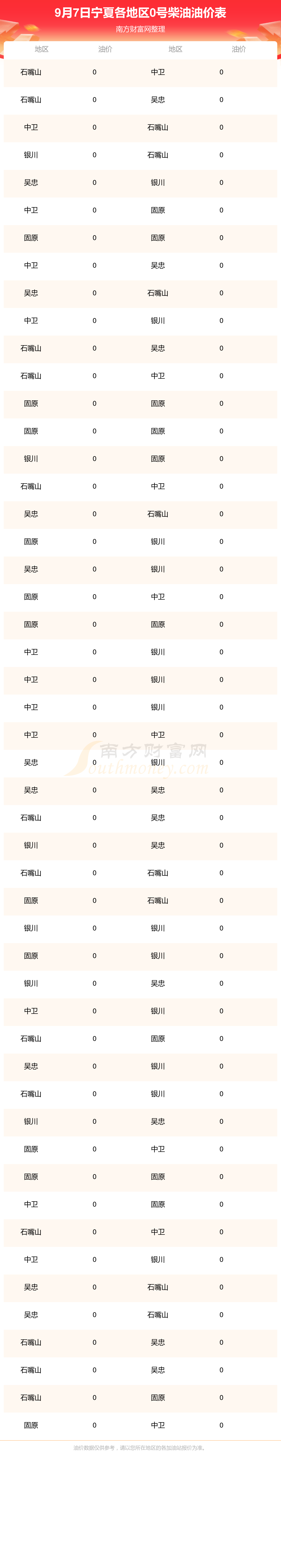 宁夏各地区最新0号柴油油价表