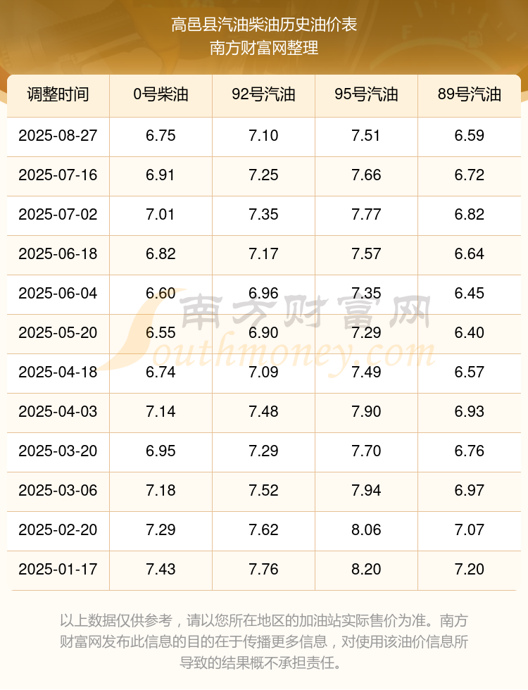 本站提供的油价数据仅供参考,具体数据以加油站报价为准。
