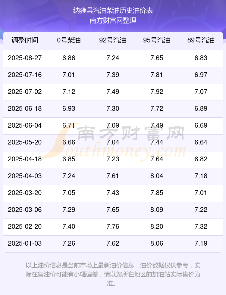 纳雍县历史油价表
