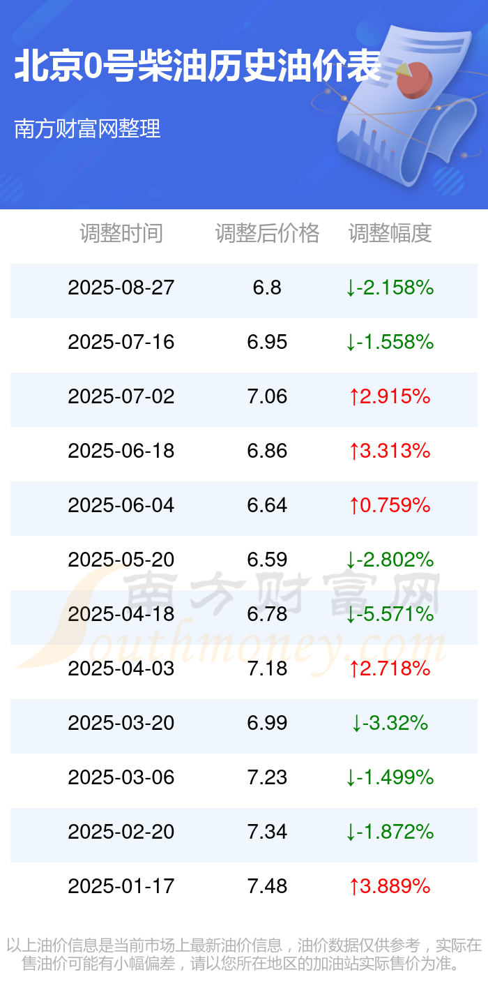 北京0号柴油历史油价表