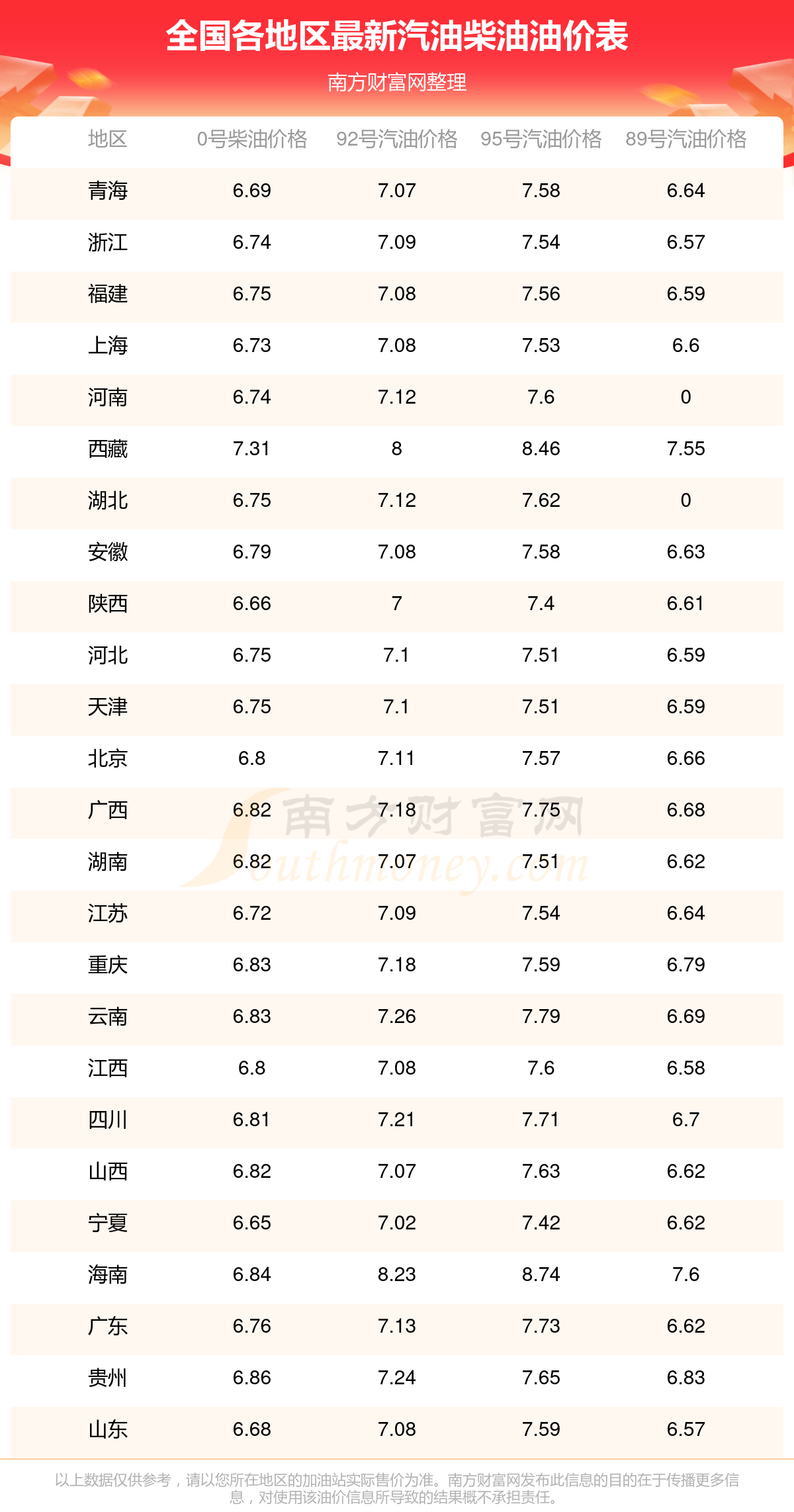 以上数据仅供参考,请以您所在地区的加油站实际售价为准。油价发布此信息的目的在于传播更多信息,对使用该油价信息所导致的结果概不承担责任。