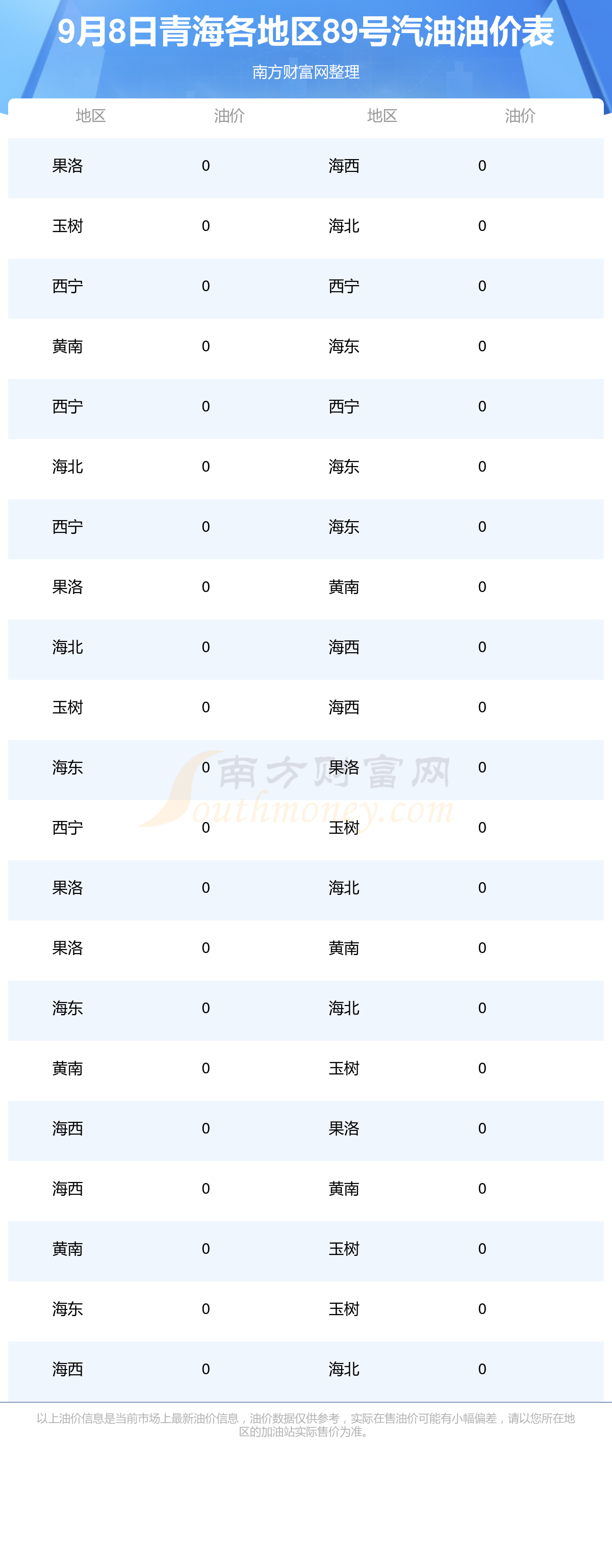 青海各地区最新89号汽油油价表