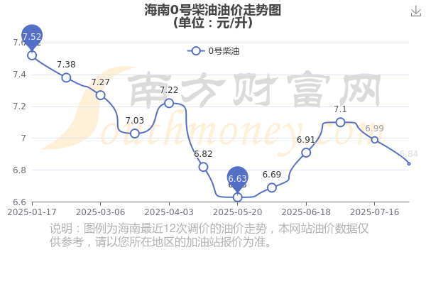 9月8日海南汽油、柴油的价格多少钱一升?本轮油价调整时间是8月27日,92号汽油8.23元,降了0.14元,降幅达1.67%;95号汽油8.74元,降了0.15元,降幅达1.69%;89号汽油7.6元,降了0.13元,降幅达1.68%;0号柴油6.84元,降了0.15元,降幅达2.15%。
