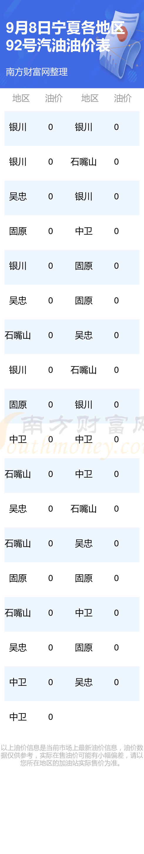 9月8日宁夏92号汽油的价格为7.02元每升,这是8月27日调整后的时间,相对上一轮调整共下降了0.14元。
