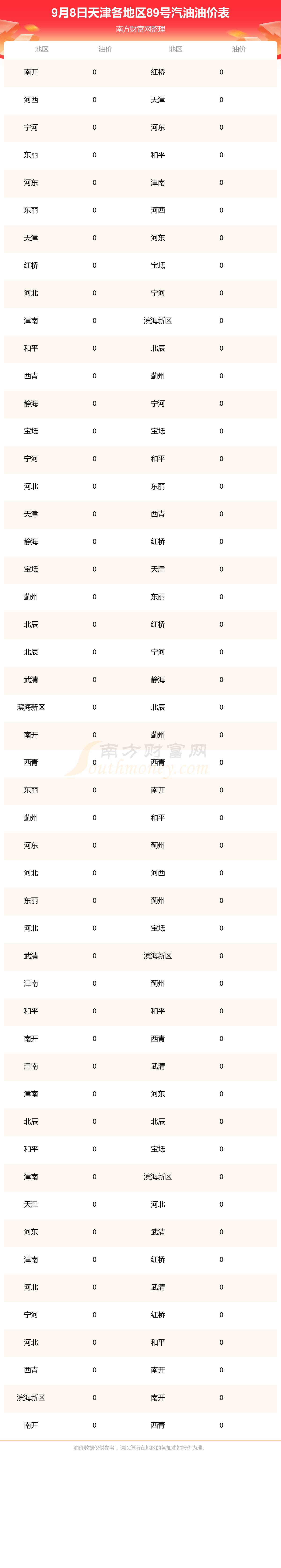 天津各地区最新89号汽油油价表