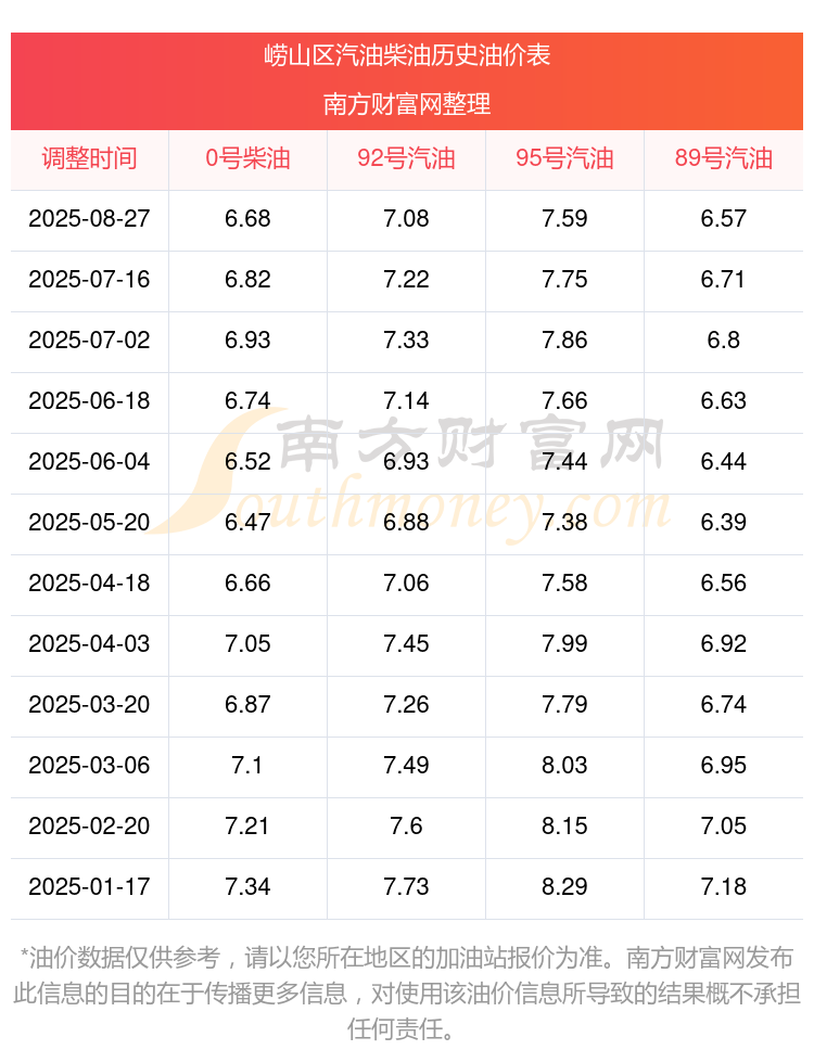 崂山区历史油价表