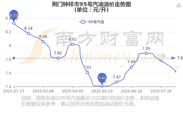 荆门钟祥市95号汽油历史油价走势图