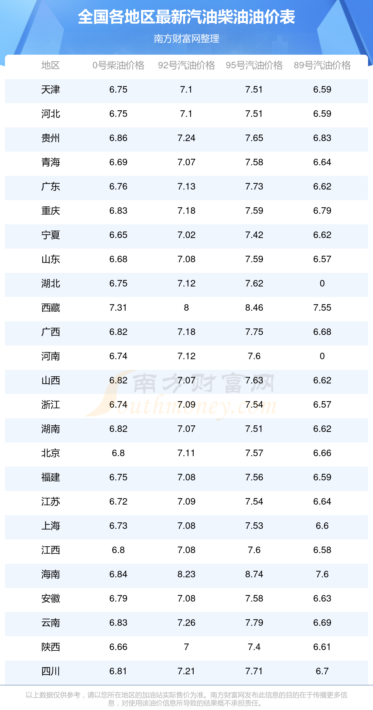 油价数据仅供参考,请以您所在地区的加油站报价为准。油价发布此信息的目的在于传播更多信息,对使用该油价信息所导致的结果概不承担任何责任。