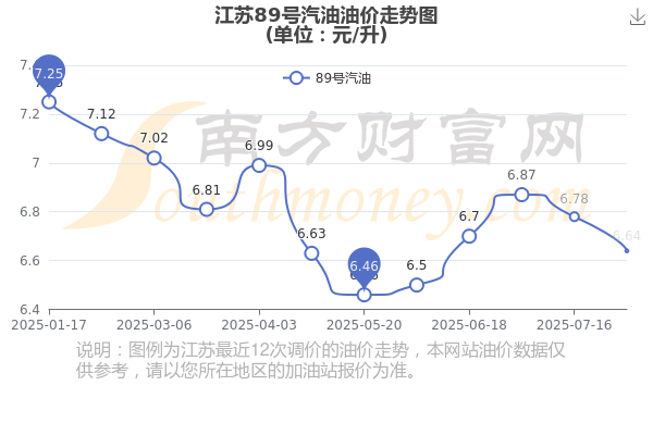 9月9日江苏汽油、柴油最新价格:本次油价调整时间是8月27日,92号汽油7.09元,减了0.14元,减幅达1.94%;95号汽油7.54元,减了0.15元,减幅达1.95%;89号汽油6.64元,减了0.14元,减幅达2.07%;0号柴油6.72元,减了0.15元,减幅达2.18%。