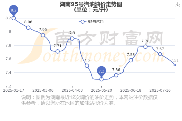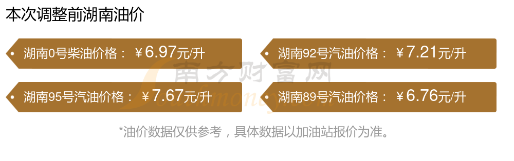 9月9日湖南汽油、柴油的价格为8月27日调整后的价格。每升最新价格为:92号汽油7.07元,降了0.14元;95号汽油7.51元,降了0.15元;89号汽油6.62元,降了0.13;0号柴油6.82元,降了0.15元。