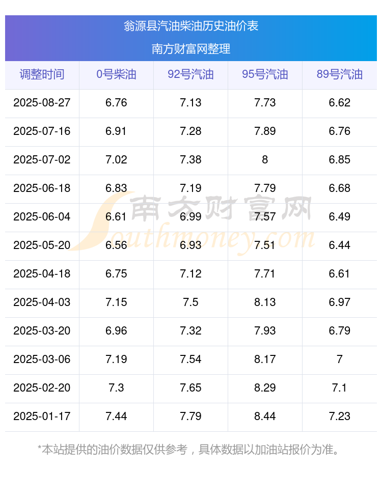 油价数据仅供参考,请以您所在地区的各加油站报价为准。