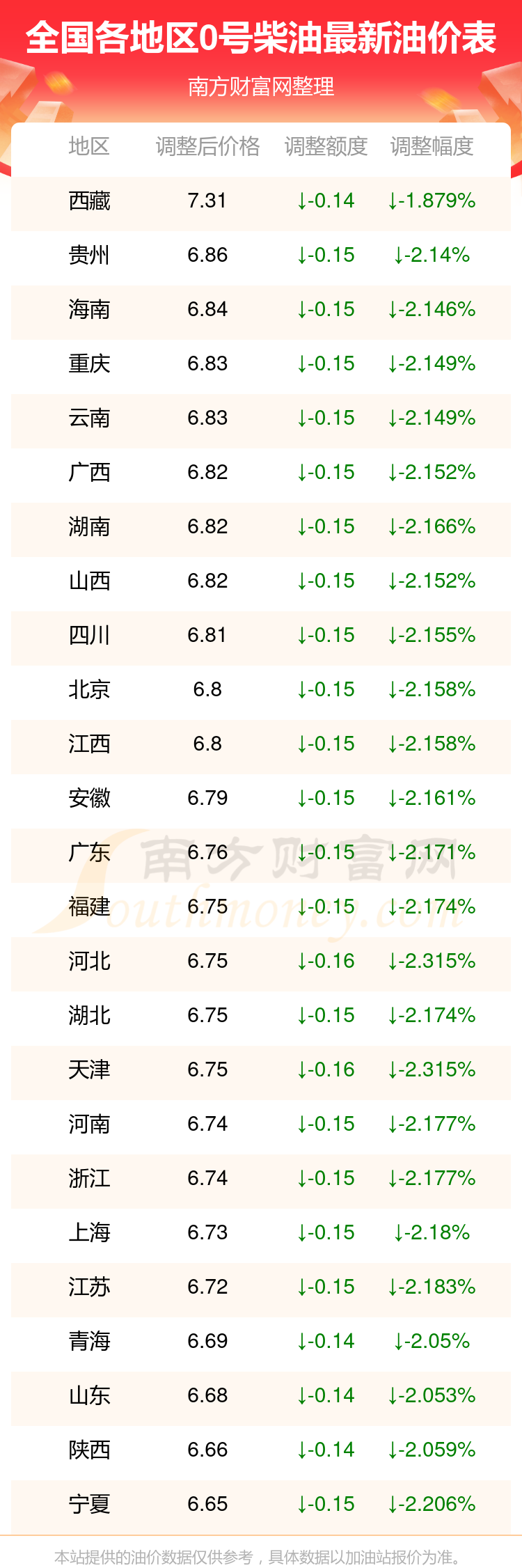 油价数据仅供参考,请以您所在地区的各加油站报价为准。