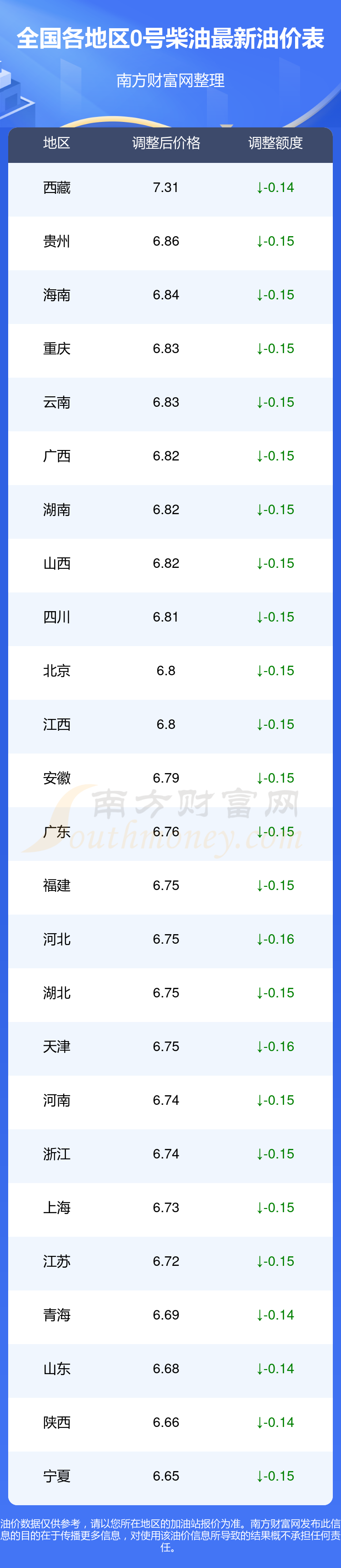 以上数据仅供参考,请以您所在地区的加油站实际售价为准。油价发布此信息的目的在于传播更多信息,对使用该油价信息所导致的结果概不承担责任。