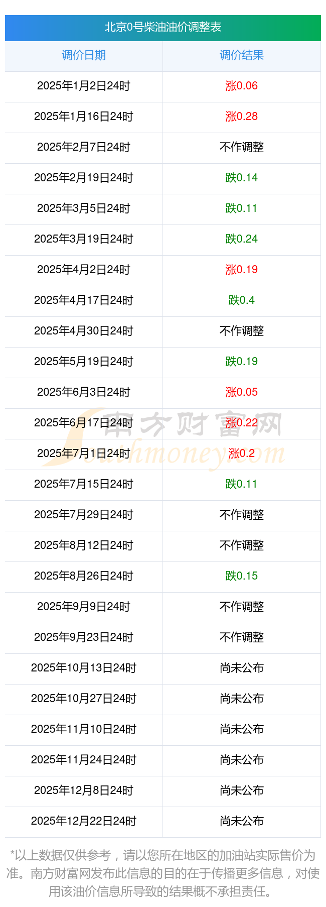 以上数据仅供参考,请以您所在地区的加油站实际售价为准。油价发布此信息的目的在于传播更多信息,对使用该油价信息所导致的结果概不承担责任。