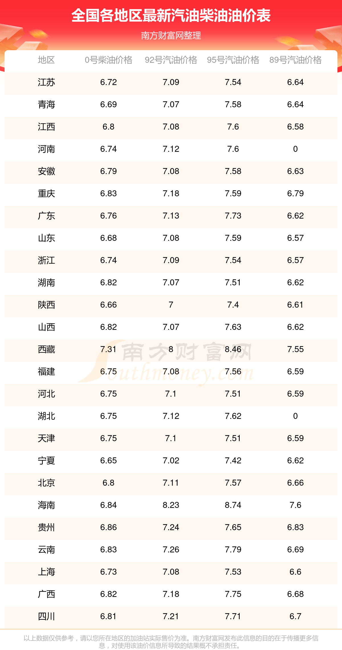 油价数据仅供参考,请以您所在地区的加油站报价为准。油价发布此信息的目的在于传播更多信息,对使用该油价信息所导致的结果概不承担任何责任。
