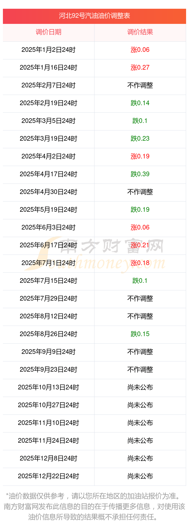 2025年油价调价窗口日期表: