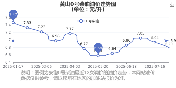 黄山0号柴油9月27日的价格为每升6.79元,本次油价的调整时间8月27日,对比上次油价调整时间7月16日的价格6.94元/升,共跌了0.15元,跌幅达2.161%。
