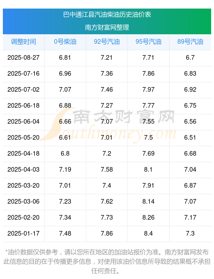 以上油价信息是当前市场上最新油价信息,油价数据仅供参考,实际在售油价可能有小幅偏差,请以您所在地区的加油站实际售价为准。