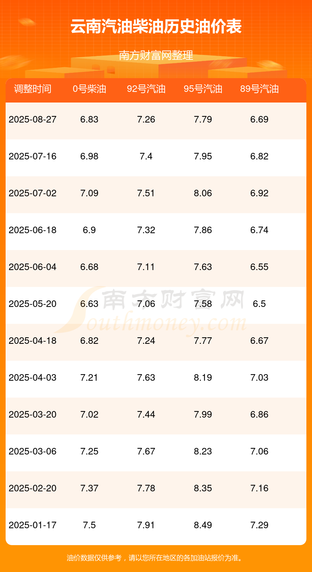 云南汽油柴油历史油价表