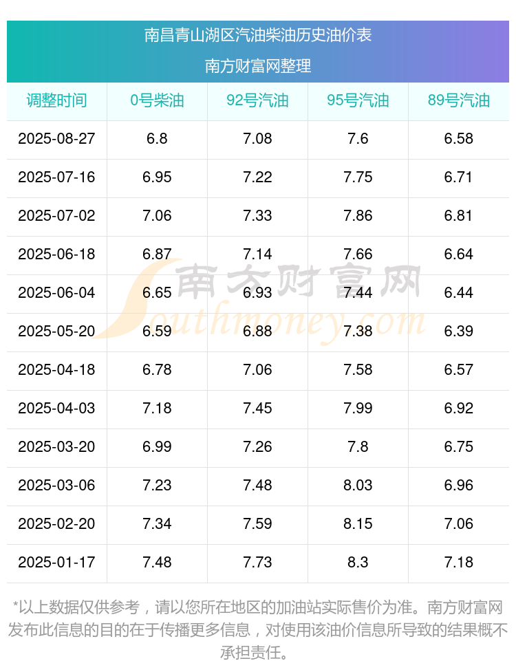 油价数据仅供参考,请以您所在地区的加油站报价为准。油价发布此信息的目的在于传播更多信息,对使用该油价信息所导致的结果概不承担任何责任。