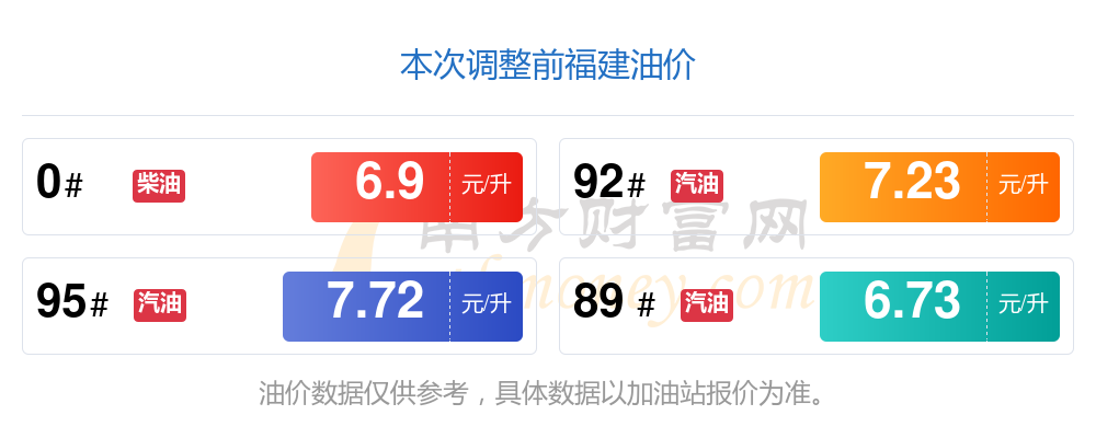以上油价信息是当前市场上最新油价信息,油价数据仅供参考,实际在售油价可能有小幅偏差,请以您所在地区的加油站实际售价为准。